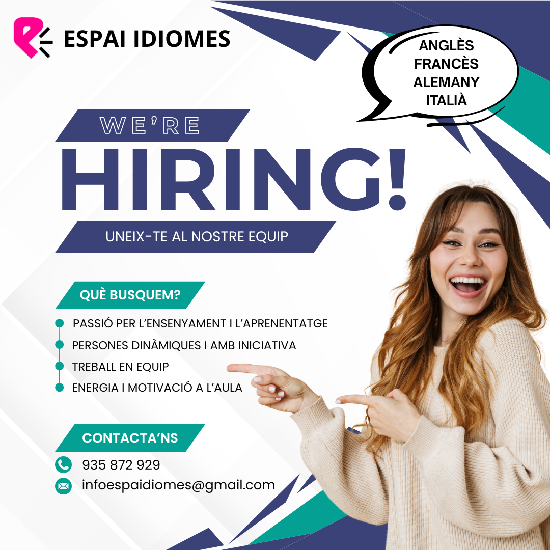 Si saps Anglès, Alemany, Francès o bé Italià i t’agrada treballar en un entorn dinàmic, amb bon ambient i un projecte educatiu motivador, ens encantaria conèixer-te.